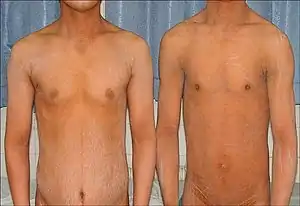 Sjögren–Larsson syndrome is a rare autosomal recessive form of ichthyosis with neurological symptoms.[1]:485[2]:564[3] It can be identified by a triad of medical disorders. The first is ichthyosis, which is a buildup of skin to form a scale-like covering that causes dry skin and other problems. The second identifier is paraplegia which is characterized by leg spasms. The final identifier is intellectual delay.