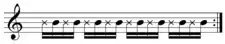 Double-time: ||:1 & 2 & 3 & 4 & :|| Common-time: ||:1 2 3 4 1 2 3 4 :|| Half-time : ||:1234123412341234:||
