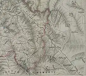 Kokzhung area in a map of Jammu and Kashmir by Frederic Drew, 1875
