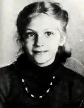Davis was born Mary Frances Penick on December 30, 1931,[2] the first of seven children born to farmer William Lee and Sarah Rachel Penick (née Roberts), in Dry Ridge, Kentucky.[3] Because her grandfather thought she had a lot of energy for a young child, he nicknamed Mary Frances "Skeeter" (slang for mosquito).[4] When Davis was a toddler, her great-uncle was convicted of murdering her maternal grandfather (his brother) in Indiana.[5] After this incident, Davis recalled that her mother became a "bitterly depressed woman."[6] Throughout her childhood, Davis's mother made multiple suicide attempts, several of which Davis herself prevented from being carried out: "I once slapped a bottle of Clorox she was drinking out of her mouth and sat on her hands to keep her from reaching for a butcher knife," she recalled.[7] On one occasion, her mother attempted to leap from the family's apartment window with Davis and her infant brother in her arms.[7] Her relationship with her mother remained strained throughout much of her life, and by Davis's account, she "couldn't seem to win my mother's respect and affection, [so] I turned my attention toward my daddy."[8]