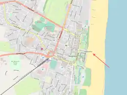 Skegness Pier is located on the B1451 Grand Parade Road and is around 0.7 miles (1.1 km) from Skegness railway station.[3] The pier's main building also houses a bowling centre, laser quest and indoor children's play centre.[4]
