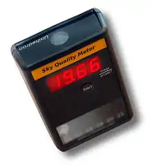 A sky quality meter (SQM) is an instrument used to measure the luminance of the night sky. It is used, typically by amateur astronomers, to quantify the skyglow aspect of light pollution and uses units of "magnitudes per square arcsecond" favored by astronomers. SQM measurements can be submitted to a database on the manufacturer's website and to the citizen science project GLOBE at Night.