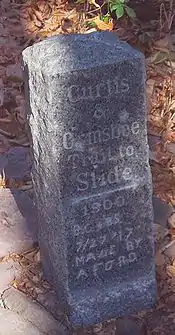 It is named in memory of William Buckingham Curtis and Allan Ormsbee, two hikers from New York who died in a sudden snowstorm in the Presidential Range of New Hampshire's White Mountains on June 30, 1900. They had laid the trail out, and a small monument to them is located at the trail's southern end, where it leaves the Phoenicia-East Branch Trail 0.8 mile (1.2 km) south of the Burroughs Range Trail junction, in the col between Slide and neighboring Wildcat Mountain.