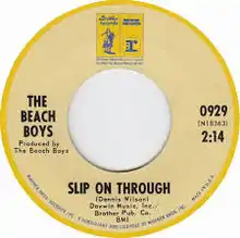 "Slip On Through" is a song written by Dennis Wilson for the American rock band The Beach Boys. It is the opening track to their 1970 album Sunflower. It was also released as a single, with the B-side "This Whole World". The single never charted in the US or in the United Kingdom.