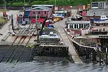 A slipway, also known as boat ramp or launch or boat deployer, is a ramp on the shore by which ships or boats can be moved to and from the water. They are used for building and repairing ships and boats, and for launching and retrieving small boats on trailers towed by automobiles and flying boats on their undercarriage.