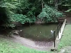 The Small Pond is also located in the castle park of Castle Ambras and is 300 metres south below the Grand Pond. The lake is surrounded by forest and has only approximately 0.70 ha size. The small lake is flowed through by the Aldranser brook and possesses little fish population. Due to the small size pollution occurs at times even through fresh water supply.