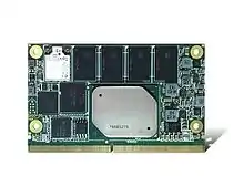 SMARC (Smart Mobility ARChitecture) is a specification published by the Standardization Group for Embedded Technologies e.V. (SGET) for computer-on-modules (COMs).[1] SMARC Computer-on-Modules are specifically designed for the development of extremely compact low-power systems. Generally, SMARC modules are based on ARM processors, they can, however, also be fitted with other low-power SoC architectures, like, for example, ones based on x86 SoCs.[2] Typically, SMARC modules’ power requirement is in the range of a few watts, which opens up avenues to markets which to date could not be addressed due to processor designs with much higher power consumption.[3]