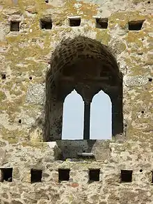 In relation to the structure itself, the inner city is notable for the audience hall, which is an important representation of Serbian medieval architecture. High in the stone wall on the Danube side, four sets of double-arched windows are carved in a combination of Gothic and Romanesque styles. This is where a merchant contract between the Republic of Venice and the Serbian Despotate was signed.[4]