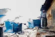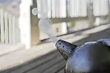 Smoke is a collection of airborne particulates and gases[1] emitted when a material undergoes combustion or pyrolysis, together with the quantity of air that is entrained or otherwise mixed into the mass. It is commonly an unwanted by-product of fires (including stoves, candles, internal combustion engines, oil lamps, and fireplaces), but may also be used for pest control (fumigation), communication (smoke signals), defensive and offensive capabilities in the military (smoke screen), cooking, or smoking (tobacco, cannabis, etc.). It is used in rituals where incense, sage, or resin is burned to produce a smell for spiritual or magical purposes. It can also be a flavoring agent and preservative.