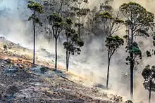 Deposited hot particles of radioactive fallout and bioaccumulated radioisotopes can be reintroduced into the atmosphere by wildfires and forest fires; this is a concern in e.g. the Zone of alienation containing contaminants from the Chernobyl disaster.