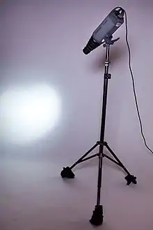 In photography, a snoot is a tube or similar object that fits over a studio light or portable flash and allows the photographer to control the direction and radius of the light beam.[1] These may be conical, cylindrical, or rectangular in shape. Snoots can isolate a subject when using a flash. They help by stopping "light spill", or when lighting falls in a larger footprint than intended.[2][3]