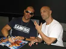 Daniels and Kazarian formed a tag team during their time in Total Nonstop Action Wrestling (TNA), where they won the TNA World Tag Team Championship twice.[9] After a feud with AJ Styles, they were named as Bad Influence and remained with the promotion until 2014. After leaving TNA, both signed with Ring of Honor (ROH), where they worked as The Addiction, winning the ROH World Tag Team Championship twice. Later, Scorpio Sky joined the team, forming a stable known as SoCal Uncensored, and were ROH World Six-Man Tag Team Champions.