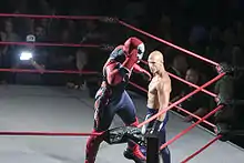 On the following episode of Impact Wrestling, Daniels entered the 2012 Bound for Glory Series, taking part in the opening gauntlet match, from which he eliminated both Styles and Angle, before being eliminated himself by James Storm.[33] On the June 21 episode of Impact Wrestling, Styles and Carter proved that Daniels and Kazarian had been lying about their relationship by producing a pregnant woman named Claire Lynch, whom they had been helping overcome her addictions.[34] The following week, Kazarian teased dissension with Daniels, claiming that he had been lied to. However, in the main event of the evening, Kazarian revealed that he was still on Daniels' side, when the two defeated Styles and Angle, after Kazarian hit Styles with a steel chair, to regain the TNA World Tag Team Championship. Following the win, Daniels admitted that Styles and Carter had told the truth about Claire, but claimed that they had left out the part about Styles being the father of her unborn baby.[35] On July 8 at Destination X, Daniels was defeated by Styles in a Last Man Standing match.[36] On the August 8 episode of Impact Wrestling, Daniels and Kazarian, billing themselves as "The World Tag Team Champions of the World",[37] made their first televised defense of the TNA World Tag Team Championship, defeating Devon and Garett Bischoff.[38] Daniels' participation in the 2012 Bound for Glory Series ended on the following episode of Impact Wrestling with a loss against A.J. Styles, leaving him outside a spot in the semifinals.[39] As a result of the win, Styles also earned a paternity test, which revealed that Claire was not pregnant at all. The storyline ended with Claire, through her attorney, revealing Daniels' and Kazarian's plot to blackmail Styles with her fake pregnancy.[40] On September 6 as part of the first "Championship Thursday", Daniels and Kazarian successfully defended the TNA World Tag Team Championship against Chavo Guerrero, Jr. and Hernandez.[41] Three days later at No Surrender, Daniels and Kazarian made another successful title defense against previous champions, A.J. Styles and Kurt Angle.[42] On October 14 at Bound for Glory, Daniels and Kazarian lost the TNA World Tag Team Championship to Chavo Guerrero, Jr. and Hernandez in a three-way match, which also included A.J. Styles and Kurt Angle.[43] Daniels and Kazarian received their rematch on November 11 at Turning Point, but were again defeated by Guerrero and Hernandez.[44] On December 9 at Final Resolution, Daniels defeated A.J. Styles in what was billed as their "final match", after hitting Styles with his own Styles Clash finisher.[45]