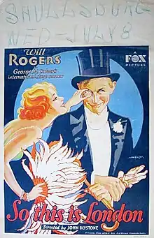 So This Is London is a 1930 American pre-Code comedy film directed by John G. Blystone and starring Will Rogers, Irene Rich, Frank Albertson and Lumsden Hare.[1]