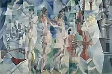 In 1906 Metzinger had acquired enough prestige to be elected to the hanging committee of the Salon des Indépendants, in addition to his entry of eight works.[6] He formed a close friendship at this time with Robert Delaunay, with whom he would share an exhibition at Berthe Weill's gallery early in 1907. The two of them were singled out by one critic (Louis Vauxcelles) in 1907 as Divisionists who used large, mosaic-like 'cubes' to construct small but highly symbolic compositions.[11]