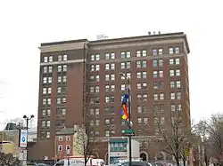 Social Service Building is a historic office building located in the Washington Square West neighborhood of Philadelphia, Pennsylvania. It was designed by noted Philadelphia architect Horace Trumbauer (1868-1938) and built in 1923–1924. It is a 10-story, steel frame brick clad building with limestone and terra cotta ornament in a Federal Revival style. The main entrance features an oversized door with fanlight, framed by Ionic order columns.[2]