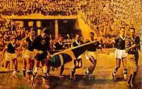 Palmeiras took the field carrying the Brazilian flag under the leadership of army Captain Adalberto Mendes. Palmeiras was leading the match by 3–1 when a penalty was called in its favor. At that moment, the SPFC ordered its players to consider the Palmeiras squad an enemy of the homeland and pulled its side off the field amid jeers from even the club's own fans. The celebrations began on the spot. The next day, newspapers contained a photograph of Palmeiras entering the field with the headline: "A Leader Dies, A Champion is Born."[5]