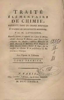 - (Lavoisier in: "Traité Élémentaire de Chimie", 1789)