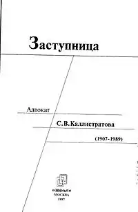 Sofiya Vasilyevna Kalistratova (Russian: Со́фья Васи́льевна Калистра́това), also known as Sofia Kallistratova (Софья Каллистратова; 19 September [O.S. 6 September] 1907, Rylsk – 5 December 1989, Moscow) was a public defense lawyer in the Soviet Union. She defended various Soviet dissidents and from 1977 was a member of the Moscow Helsinki Group (MHG), distributing information about human rights violations in the Soviet Union.