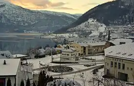 Sogndal is a municipality in Vestland county, Norway. It is located on the northern shore of the Sognefjorden in the traditional district of Sogn. The village of Hermansverk is the administrative center of Sogndal municipality. Other villages include Kaupanger, Kjørnes, Fimreite, Nornes, and Fjærland. Sogndal Airport, Haukåsen is located 10 kilometres (6.2 mi) southwest of Kaupanger.