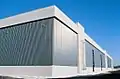 Building integrated unglazed transpired solar air collector with grey walls and white canopy/collection ducts