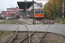 The current ASm line has now been extended from Niederbipp to Oensingen again. The groundbreaking ceremony was held on 1 December 2010, while operations on the new 1.7 kilometre-long section commenced at the timetable change on 9 December 2012.[3] This line generally uses the route used by the LJB from 1907 to 1943—but built as a tramway—and which was occasionally shared by the SNB even then.