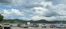 There are two public access areas on Somerset Dam, Kirkleigh and The Spit. Both locations have multi-lane, concrete boat ramps with facilities for day-trippers.[8] Camping is permitted and caravans are catered for at Kirkleigh and below the dam wall at Somerset Park in the small town of Somerset Dam. During busy periods the two camping locations can be filled to capacity with room for a maximum of 2,200 campers at Kirkleigh and 800 at Somerset Park.[9] Lake Somerset Holiday Park's Kirkleigh campground also features cabin accommodation at the waterfront and direct access to the dam from a grassy spit.[10] The dam contains 30 kilometres (19 mi) of navigable waterway.[8]