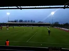 The Railway End which now houses primarily away supporters but also home supporters from time to time, is a covered terrace opened in September 1933, following a £230 donation from the supporters club and £120 from the ladies supporters club.[2] In 2012, the club totally re-roofed the Railway End, despite not being instructed to at the time.[13]