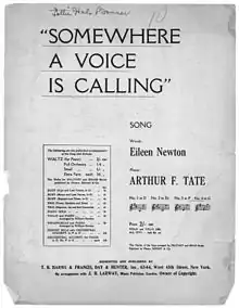 Somewhere a Voice is Calling is a World War I song originally released in 1901. Arthur F. Tate composed the song and Eileen Newton wrote the lyrics. The song was published by T.B. Harms & Francis, Day & Hunter in New York City.[2]