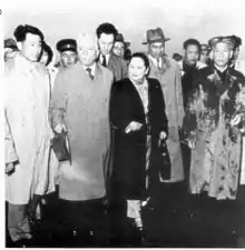 Soong was held in great esteem by the victorious Communists, who reckoned her as a link between their movement and Sun's earlier movement.[8] After the formal establishment of the People's Republic of China in 1949, she became one of six vice chairpeople of the Central People's Government,"[10] and one of several vice-chairpeople of the Sino-Soviet Friendship Association.[10] In April 1951, it was announced that she had been awarded the Stalin Peace Prize for 1950.[11]