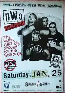 Souled Out (1997) was the inaugural Souled Out professional wrestling pay-per-view (PPV) event produced by World Championship Wrestling (WCW).[2] The event took place on January 25, 1997 from the Five Seasons Center in Cedar Rapids, Iowa. The pay-per-view was presented by the nWo in storyline and the official title of the event was nWo Souled Out. It was an nWo-themed pay-per-view, with nWo official referee Nick Patrick officiating all of the matches by wearing an nWo T-shirt and cap and the group's members Eric Bischoff and Ted DiBiase providing commentary.