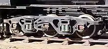 The design of the leading Bissel truck necessitated certain proportions to suit the ten-coupled wheel arrangement, but the trailing Bissel truck was similar to that of the Class 19C. Its axle boxes were provided with end thrust pad bearings attached to the axle box covers, which relieved the ends of the bearing from the effects of end thrust. This device proved successful in reducing the number of hot boxes on trailing Bissels.[2]