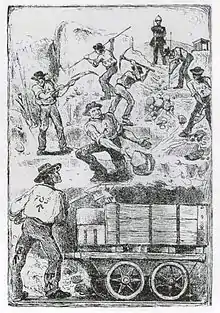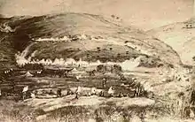 Technological innovations in southern Africa altered mining, guns, and transportation as well as the course of the war. Mining difficulties helped to create and utilise new technology in the Kimberley mines, where new means of extraction were needed. Originally, numerous small mines created a strange network of larger mining claims. By 1873, Kimberly miners were forced to construct a cable transport system due to several collapses of the roads leading into the mines. The cables in the Kimberly mines were held up by support beams that were placed around the perimeter of the mine. Each level of the mine had two to three platforms. Originally the ropes were made of animal hides or hemp, within a year there was exponential growth of the cable system. The natural materials used for the cables were replaced with wire. After only a year, the mines had grown so elaborate with this system that it inspired awe in people.[48] As mines were dug deeper into the ground, water extraction became a problem. The miners brought in electric pumps to help pump out the water.[49] Cecil Rhodes even started a pumping business during this time.[50] The growth in the mines allowed large business owners to take control of the mines.