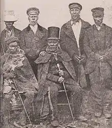 Several factors contributed to the outbreak of Ngcayechibi's War (also known as the "9th Frontier War" or the "Fengu-Gcaleka War"). One was the onset of the worst drought in the region's recorded history, and as the historian de Kiewiet memorably noted: "In South Africa, the heat of drought easily becomes the fever of war."[27] The devastating droughts across the Transkei threatened the relative peace which had prevailed for the previous decade. They started in 1875 in Gcalekaland and spread to other parts of the Transkei and Basutoland, also to the Cape Colony-controlled Ciskei. In 1877 ethnic tensions began to emerge, particularly between the Mfengu, the Thembu and the Gcaleka Xhosa. Another factor was centuries of oppression and disaffection, brought to a head by the attempt by the new British Colonial Secretary, the Earl of Carnarvon (in office 1866–1867 and 1874–1878), to force the varied states of southern Africa into a British-ruled confederation. This led the British Governor and High Commissioner for Southern Africa, Henry Bartle Frere (in office 1877–1880) to use the outbreak of fighting to overthrow both the Gcaleka Xhosa state (1877–1878) and the Cape Government (February 1878). The outbreak initially involved tensions and violence between Gcaleka Xhosa and Cape Mfengu police. The conflict rapidly escalated when Bartle Frere declared the Xhosa King deposed, and resulted in the annexation of the last independent Xhosa state, and the overthrow of the Cape's elected government by the British Governor. The Confederation attempt failed, but the wars resulting from that attempt continued for decades.[28][29]