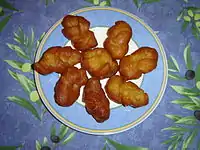 - Vetkoek (fat cake, magwinya), deep-fried dough balls, typically stuffed with meat or served with snoek fish or jam.