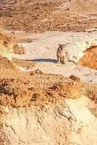 The cougar preys on birds, camelids,[3] deer, sloths, rodents, frogs, agoutis and lizards.[9] It sometimes preys on spectacled bear cubs.[10] In San Guillermo National Park, the vicuña[3] is the cougar's main prey species that constitutes about 80% of its diet. It also preys on guanaco, mice and hares.[11] It abandons kills when harassed by Andean condor, which causes them to kill 50% more prey than North American cougars.[12]