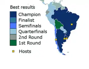 - 2nd Round = second group stage, top 12: 1982; knockout round of 16: 1986–present