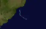 According to the Hydrographic Center of the Brazilian Navy, on December 9, 2017, a subtropical storm formed over the southeastern tip of a South Atlantic Convergence Zone, being located close to the state border between Espírito Santo and Bahia, moving southeastwards away from land.[45][46][47] On early December 11, as it moved more southwardly, Guará attained its peak intensity while transitioning to an extratropical cyclone.[48] Shortly thereafter, Guará became fully extratropical, later on the same day.[49]