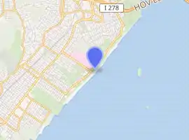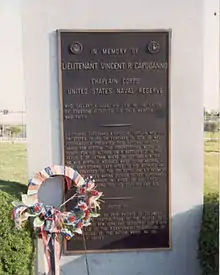 The Capodanno Memorial was named after Father Vincent R. Capodanno, a local resident who was a chaplain in the United States Navy and was killed in 1967 during the Vietnam War. A granite monument on the boardwalk was dedicated to him in 1976,[15] and Seaside Boulevard was renamed after Capodanno the same year.[16] Located at Sand Lane and Fr. Capodanno Boulevard, the memorial consists of a bronze and steel tablet recessed in a granite stele.[17]