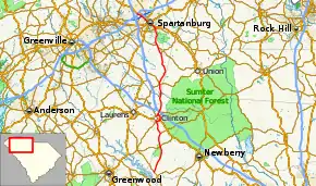 | Counties | Newberry, Laurens, Union, Spartanburg | |||