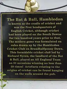 The All England Jumping Course at Hickstead (Royal International Horse Show) is held (usually) at the A2300 Hickstead Interchange on the side of the A23, west of Burgess Hill, next to the River Adur in Hurstpierpoint and Sayers Common. There are many horse-racing stables on the Lambourn Downs. The Epsom Derby is held in early June. The Hambledon Cricket Club, in south-east Hampshire, was the birthplace of modern cricket. Cricket was developed as a game for Hampshire and Kent farmers.