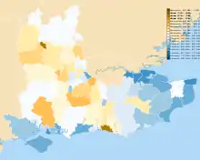 The population of the region at the 2011 census was 8,634,750 making it the most populous English region.[1] The major conurbations of the region include South Hampshire (855,000), Brighton/Worthing/Littlehampton (474,000) and Reading (318,000).[5] Settlements closer to London are part of the conurbation known as the Greater London Urban Area.