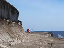 As well as those out for a stroll other activities indulged in include sea fishing from small boats and angling from the concrete breakwater, photography of wildlife and shipping etc., also birdwatching,[26] sailing, kite surfing, windsurfing, jet-skiing, diving and motorcycling.[27]