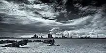 On the inner side of the breakwater is Bran Sands known for its bird life and the wooden wreck of a ship in the sands. A number of underwater wrecks lie off South Gare.[23]