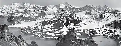 Argentina claimed South Georgia in 1927.[12] The basis of this claim and of a later claim in 1938 to the South Sandwich Islands has been questioned.[13] During the Second World War, the Royal Navy deployed an armed merchant vessel to patrol South Georgian and Antarctic waters against German raiders, along with two four-inch shore guns (still present) protecting Cumberland Bay and Stromness Bay, which were manned by volunteers from among the Norwegian whalers. The base at King Edward Point was expanded as a research facility in 1949/1950 by the British Antarctic Survey, which until 1962 was called the Falkland Islands Dependencies Survey.