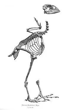 The third takahē collected went to the Königlich Zoologisches und Anthropologisch-Ethnographisches Museum in Dresden, and the Director Adolf Bernhard Meyer examined the skeleton[10] while preparing his classification of the museum's birds, Abbildungen von Vogelskeletten (1879–95). He decided the skeletal differences between the Fiordland bird and Owen's North Island specimen were sufficient to make it a separate species, which he called Notornis hochstetteri, after the Austrian geologist Ferdinand von Hochstetter.[11]