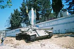 In 1987 Hezbollah fighters from the Islamic Resistance stormed and conquered an outpost in Bra’shit belonging to the South Lebanon Army in the security zone. A number of its defenders were killed or taken prisoner and the Hezbollah flag was raised on top of it. A Sherman tank was blown up and a M113 Armored Personal Carrier was captured and driven triumphantly all the way to Beirut.[27]