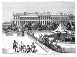 Land sales at Emerald Hill began in 1852, and while the hill itself was reserved as the site for an orphanage, Canvas Town was soon replaced by cottages, including many that were prefabricated overseas in timber and corrugated iron. Independence from the City of Melbourne was granted when Emerald Hill was proclaimed a borough on 26 May 1855.[2] In 1857, Melbourne's second railway line, to St Kilda, was created running through the new municipality.