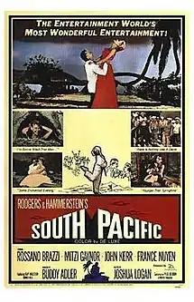 South Pacific is a 1958 American romantic musical film based on the 1949 Rodgers and Hammerstein musical South Pacific, which in turn is loosely based on James A. Michener's 1947 short-story collection Tales of the South Pacific. The film, directed by Joshua Logan, stars Rossano Brazzi, Mitzi Gaynor, John Kerr and Ray Walston in the leading roles with Juanita Hall as Bloody Mary, the part that she had played in the original stage production. The film was nominated for three Academy Awards, winning the Academy Award for Best Sound for Fred Hynes.