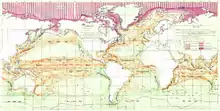 The South Pacific Gyre subseafloor community is also unusual because it contains oxygen throughout the entire sediment column. In other subseafloor biospheres, microbial respiration will break down organic material and consume all the oxygen near the seafloor leaving the deeper portions of the sediment column anoxic. However, in the South Pacific Gyre the low levels of organic material, the low rates of respiration, and the thin sediments allow the porewater to be oxygenated throughout the entire sediment column.[4] In July 2020, marine biologists reported that aerobic microorganisms (mainly), in "quasi-suspended animation", were found in organically-poor sediments, up to 101.5 million years old, 250 feet below the seafloor in the South Pacific Gyre (SPG) ("the deadest spot in the ocean"), and could be the longest-living life forms ever found.[5][6]